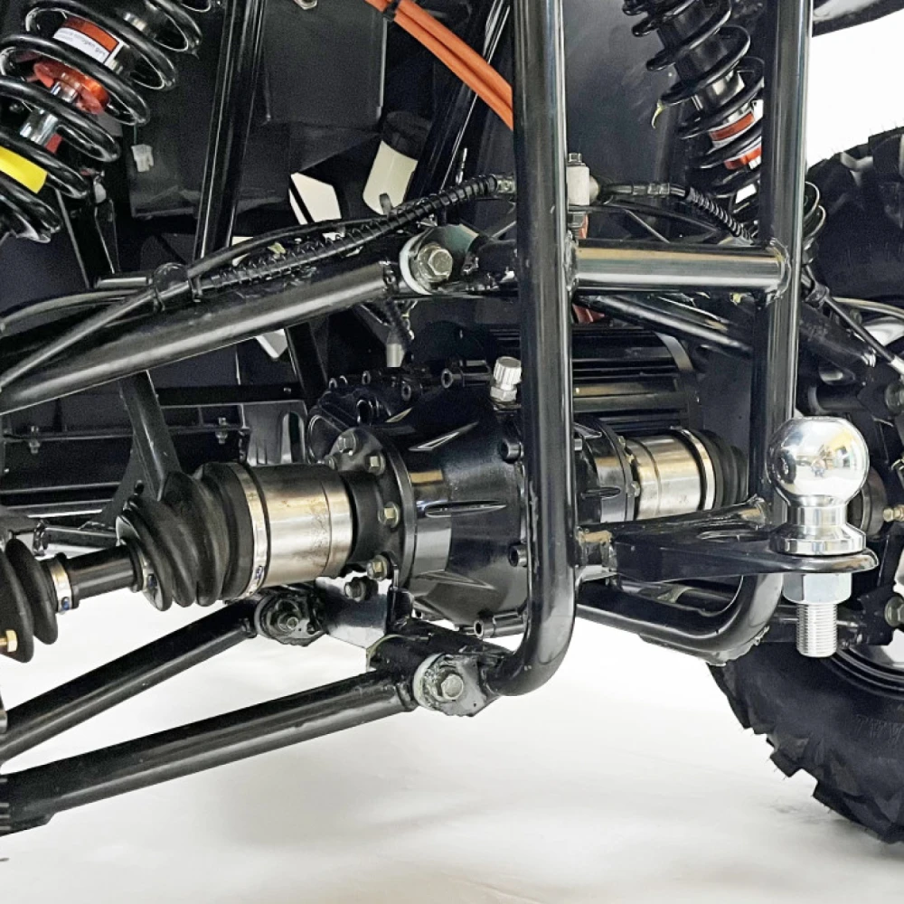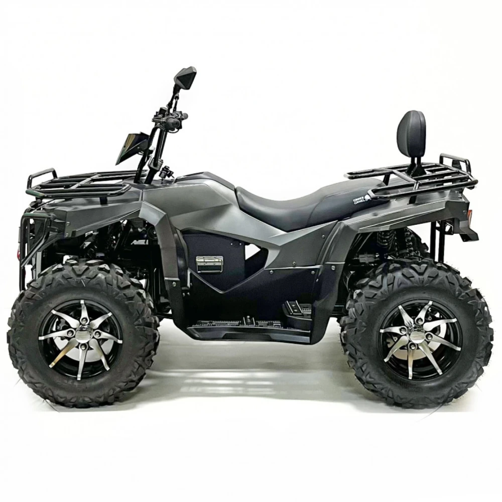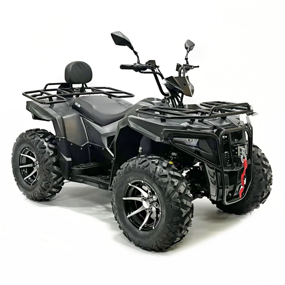 Двигатель квадроцикла – это высокоэффективный PMSM мотор мощностью 10 кВт, который обеспечивает динамичное ускорение и плавное распределение мощности. Максимальная скорость достигает 70 км/ч, что позволяет уверенно передвигаться как по проселочным дорогам, так и по легкому бездорожью, а максимальная нагрузка в 200 кг открывает широкие возможности для перевозки пассажиров и грузов. Дополнительные опции, такие как фаркоп и лебедка, значительно расширяют функциональные возможности транспортного средства, делая его незаменимым помощником в самых разнообразных ситуациях.