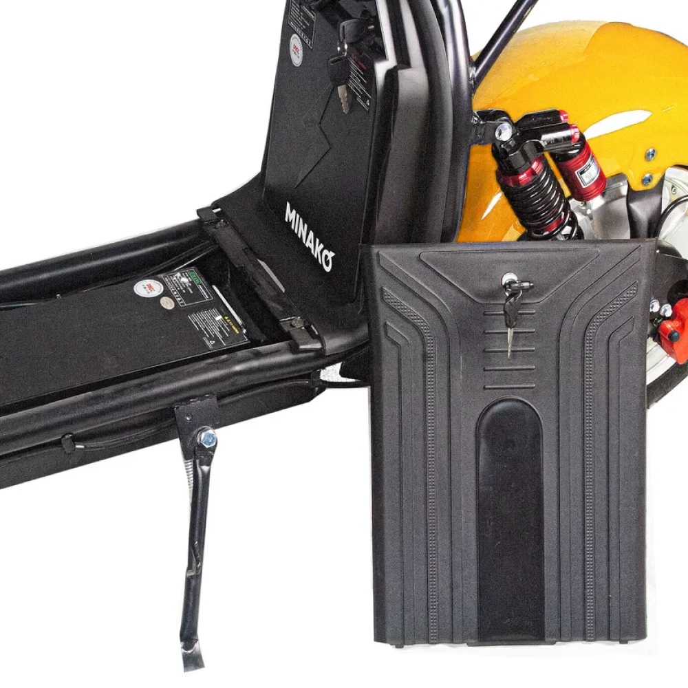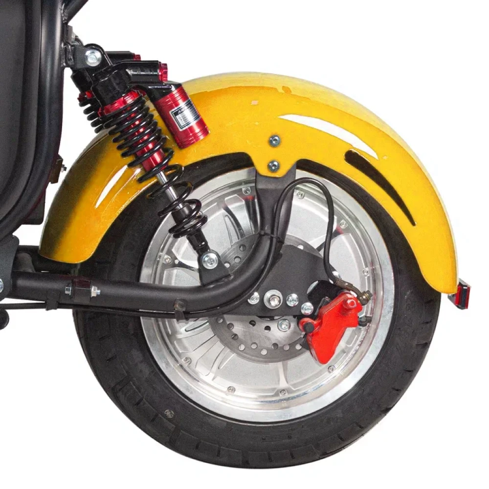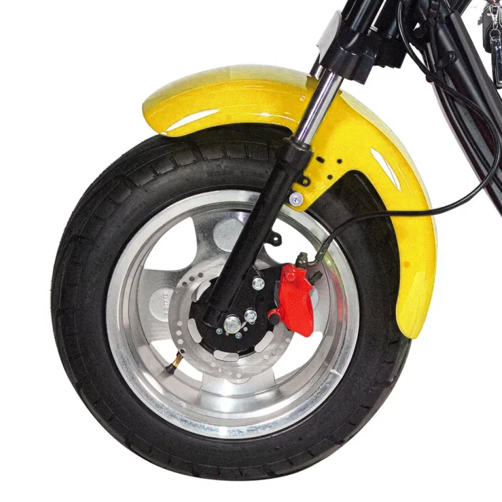 Электроскутер Minako Rex Citycoco 2000w - это качественный и удобный электроскутер с двумя колесами и яркой желтой расцветкой. Он имеет внушительные характеристики, которые сделают вашу поездку комфортной и безопасной.