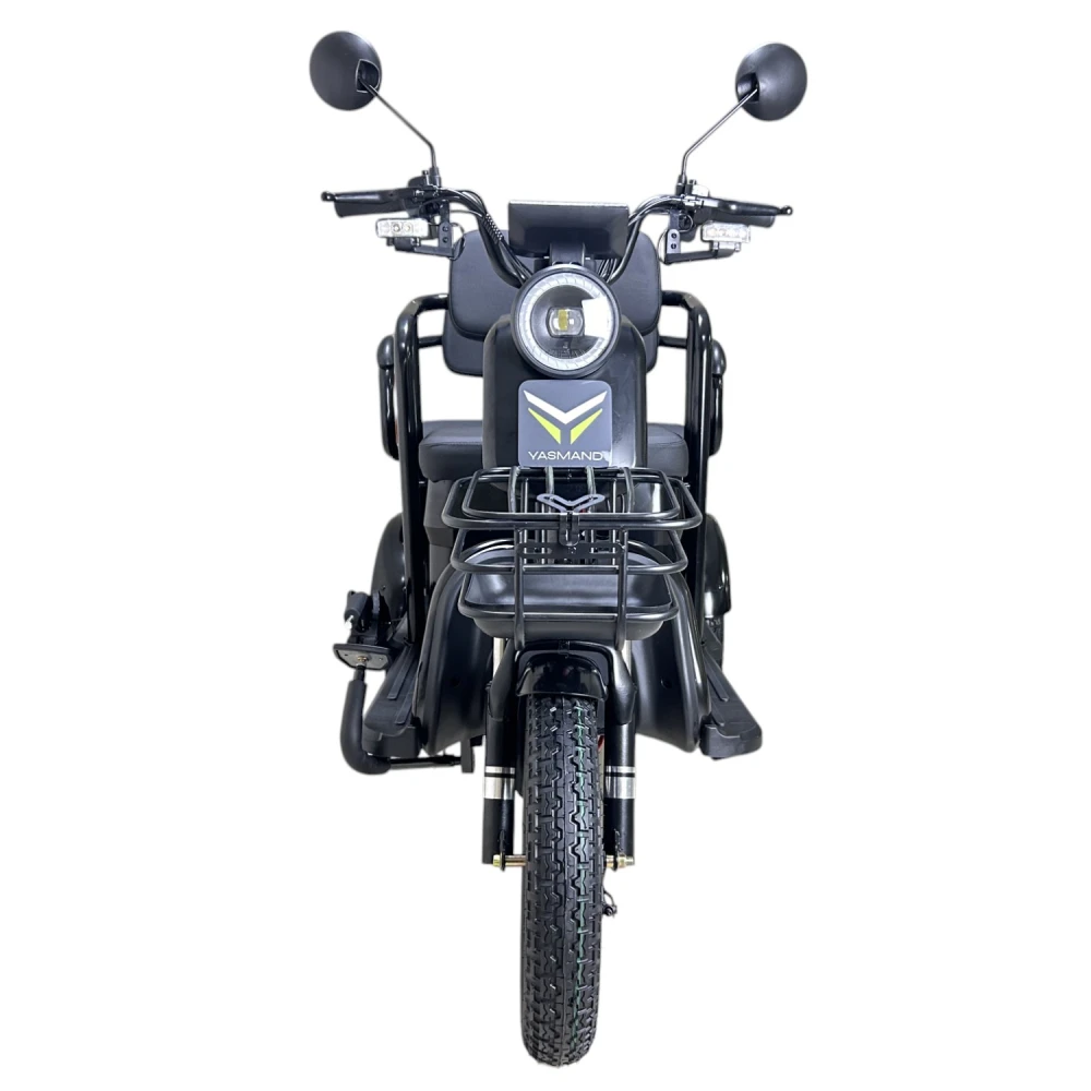Yasmand R12 — доступный трёхколёсный электротрицикл с простым функционалом. Хорош для недолгих городских поездок на 30–40 км и хозяйственных задач.