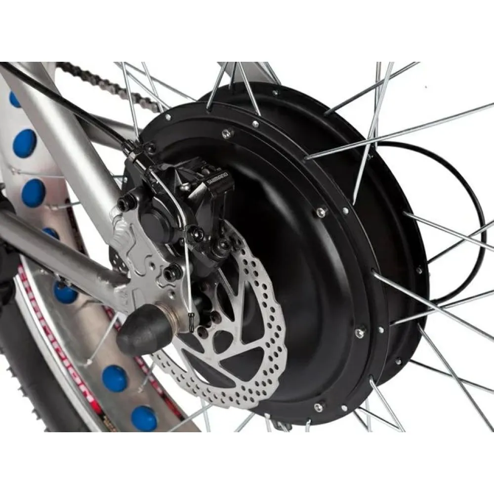Девайс оборудован мощным движком 1400 Вт с цепным задним типом привода для обеспечения быстрого разгона до 40 км/час. Аккумулятор встроен в раму, имеет специальную защиту от повреждений и попадания влаги. Амортизационная система на передней подвеске представлена надежным и хорошо зарекомендовавшим себя механизмом. Удобное сидение предназначено для длительных поездок. Быстрая остановка гарантируется дисковой тормозной системой. Райдер оценит широкие 26 дюймовые колеса с мощным протектором. Вес модели 32 кг повышает устойчивость при быстрой езде. Педали имеют цельную конструкцию и легко вращаются. Для оформления заказа предлагаем связаться с нашим менеджером.