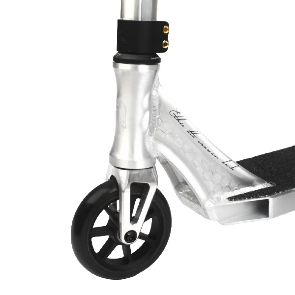 Трюковой самокат Ethic Erawan Chrome, цвета хром - трюковая модель понравилась райдерам высокими техническими возможностями.  Комплит подойдет райдерам ростом до 165 см. Комплектация и универсальность модели подразумевает использование и профессиональными пользователя, и новичками.